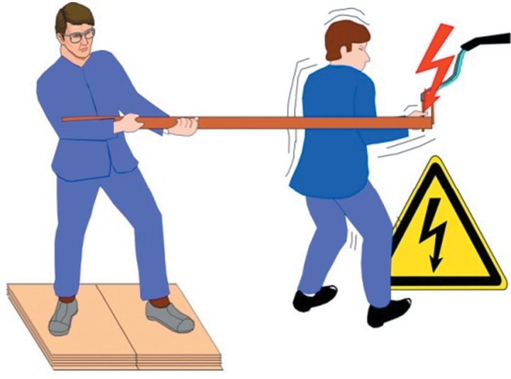 ? ? ? ?若導線落在觸電者身上,可用干燥的木棒、竹竿挑開導線;如果無法切斷電源,可以用絕緣的電工鉗或干燥的木柄斧頭或其他絕緣利器將電源切斷。